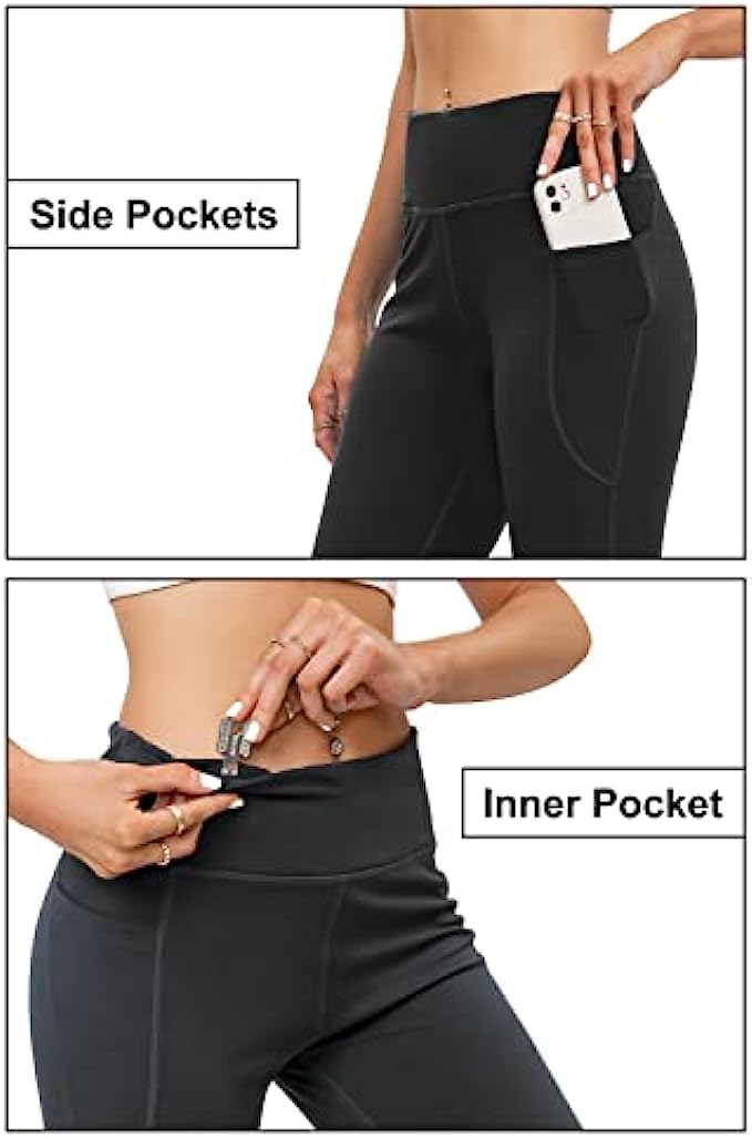 73% polyester 27% spandex ULTRA-SOFT MATERIAL: Bootcut workout pants(Upgrade) for women are made from materials with 73% Polyester & 27% Spandex premium butter. Super stretchy and soft, large proportion polyester retains its shape and is very durable, easily washed & dried. HIGH WAIST & TUMMY CONTROL: Yoga pants a High-Rise Waistband with Tummy Control design, it won't roll down even you do a wide range of movement, 4-way Stretch material that promotes both compression and support. Sweat-wicking, Non-See-Through and make streamlined look. Perfect womens dress pants. FUNCTIONAL THREE POCKETS: The bootleg pants with 2 side pockets & 1 waistband pockets are ideal for keeping your cards, keys, etc. while you're on the yoga or working out at any places. 2 side deep pockets can fit a large smart phone can let you move, squat or do any poses in your exercises. UNIQUE DESIGN: Design your own work pants that suit you best, whether you’re tall or petite, slim or plus-size or anyother. You can alter these yoga pants to your preferred inseam length all on your own; find two symmetrical marks at the bottom of the flare pants and trim. Don't worry, they won't lose their bootcut shape in the process. VERSATILE SCENES: If you're looking for even more cozy pieces for your closet, workout pants would be your Best Choice either for work, casual or daily wear, yoga pants for women can be matched from high heels to flat shoes, from office to yoga classroom, so that both your work, life and exercise can be connected seamlessly.